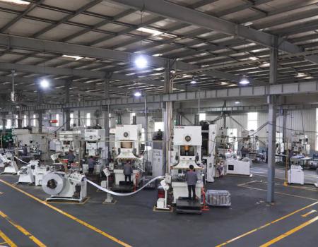 我公司的生产设备包括冲压机40多台(从16吨到500吨不等)、AMADA数控冲床、AMADA数控折弯机、HASS数控加工中心、HAAS数控车床、松下焊接机器人等,年生产能力8000万件。我们拥有各种类型的检测设备,包括大型坐标测量仪、投影仪、拉力试验机、盐雾试验机等。使用ERP管理系统进行日常订单和物料管理,可以为客户提供更准确的数据追溯。